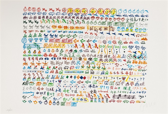 La exposición estaba conformada por más de 80 obras de 24 artistas de 12 naciones distintas y, a través del recorrido por las cinco salas en las que había sido dispuesta (junto al muro principal del Centro), era posible apreciar que no existen confines territoriales que puedan contener el lenguaje artístico, que habla a veces en forma de misiva íntima y amistosa (Carta a Miguel Ángel Muñoz, José Luis Cuevas), otras con ideogramas y múltiples colores (Olympic Centennial, Nam June Paik) y algunas más en formas primigenias enmarcadas por colores primarios y una fuerza expresiva única y encantadora (Sala Gaspar, Joan Miró), sin importar si se presentan en grandes formatos y lienzos imponentes (Antoni Tàpies) o en materiales poco usuales y pequeñas estampas (Eduardo Chillida).
