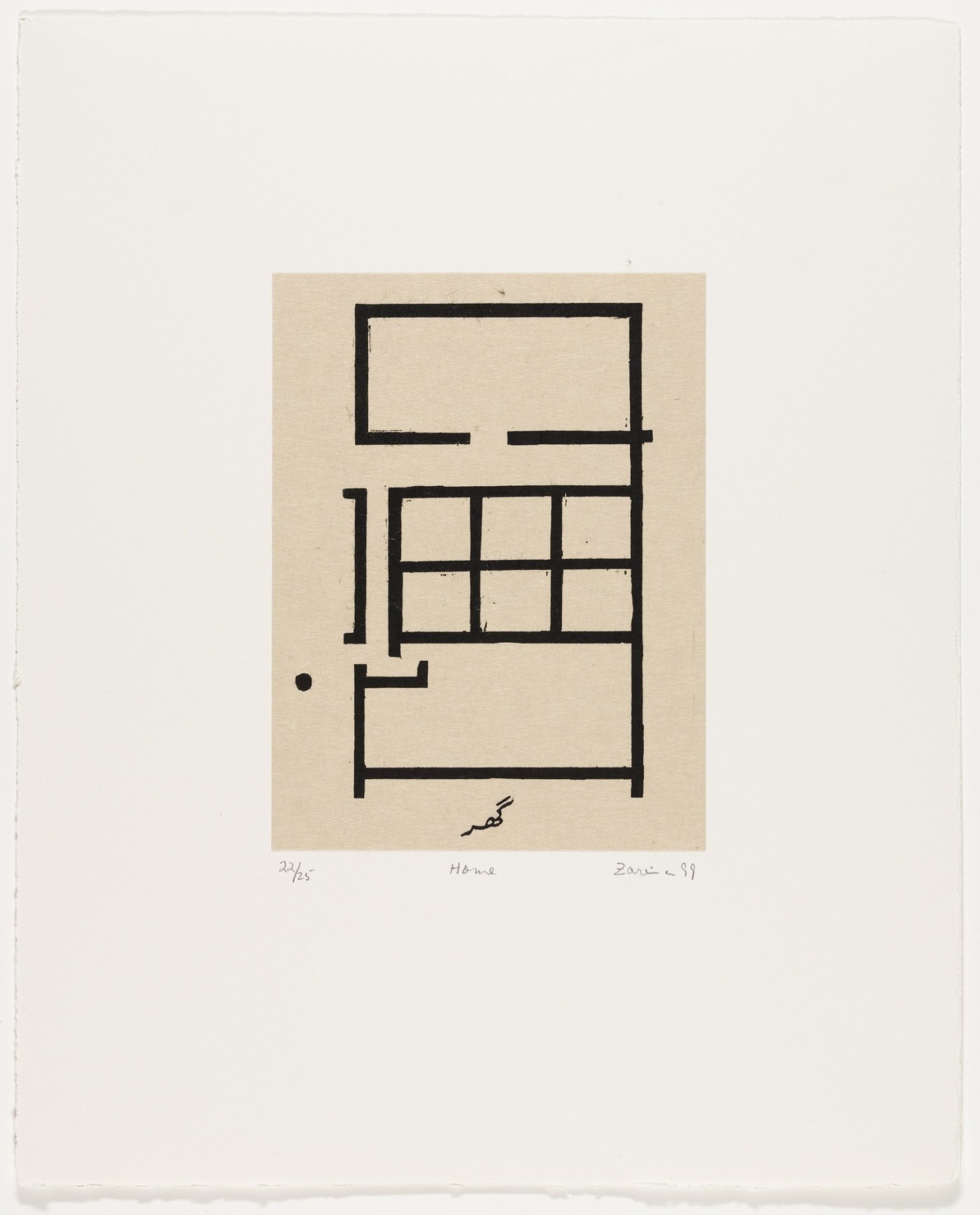 ¿Qué pasa cuando la casa se abandona y los planos se pierden? Su carencia se siente permanentemente y el movimiento que se despliega de un suceso así pronto se convierte en búsqueda. En Home is a Foreign Place (1999) la artista indoamericana Zarina imprime una serie de dibujos geométricos sobre paneles de madera. Estos a su vez están colocados sobre hojas de papel, acompañados de un caligrama que traduce ciertas palabras del urdu –su idioma natal– al Nastali’q, un antiguo tipo de caligrafía persa. La obra es un ejemplo de la extrañeza a la que puede llevar el abandono del hogar. Los paneles sobre el papel aparecen ante los ojos sin un orden aparente, sin una llave para descifrarlos.