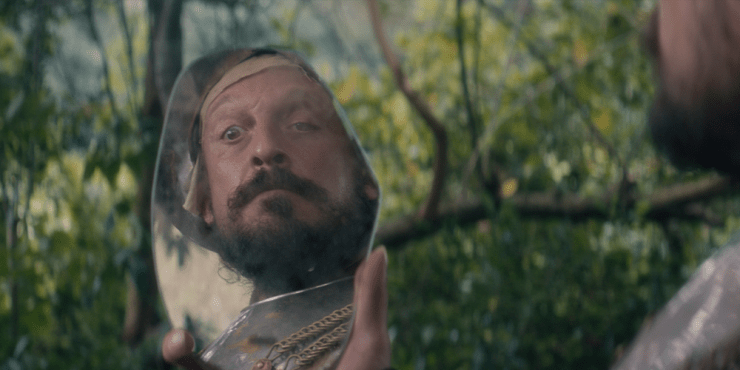 ESJB: En el proceso de la voz en off fui partícipe sobre lo que había que hacer y tal. El proceso final tuvo que ser decisión de Rodrigo y de quien se encargaba del guión. Yo, particularmente, pude dejar en este aspecto de la película esa idea de que la voz en off tenía que ser desde el pensamiento y había que diferenciarlo un poquito. Es difícil porque a la hora de pensar, la estructura de nuestro pensamiento no es la misma que a la hora de hablar, aunque no lo captemos así. Cuando piensas se concreta mucho más; tú a ti mismo te entiendes mejor. Así quedó en la película el pensamiento del conquistador un poquito diferente a como se habla.