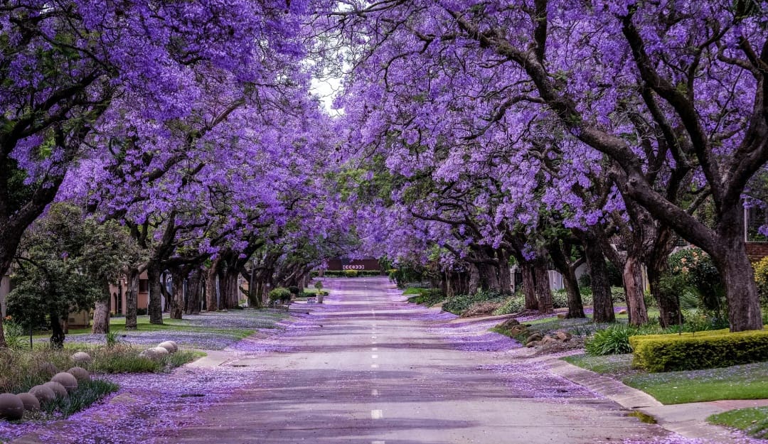 Lo maravilloso de habitar una ciudad llena de jacarandas está en la cantidad de flores moradas cuyos pétalos atraviesa la luz y tiñen todo de ese color en cualquier rama que te encuentres. Durante la primavera, de inicio a fin, transitamos entre tonalidades que extrañamos el resto del año, y en cada jacaranda de esta ciudad, Guadalupe Inn, celebramos el Festival de las Luces. Por las noches, nuestro gobierno, en coordinación con mi departamento en la OFASIM, instala lámparas en cada flor, y los árboles, terroríficos en la oscuridad, adquieren una emoción que ni las luces artificiales de las casas de los Otros, durante lo que llaman “Navidad”, podrían lograr; lástima que nunca se van a enterar: nunca miran hacia arriba. En verano, por otro lado, no hay flores moradas; son entonces las raíces las que nos emocionan. Agradecemos y celebramos sus formas inesperadas, ninguna es exactamente igual a la otra. Además, como ahora a mí, nos resguardan del agua torrencial.